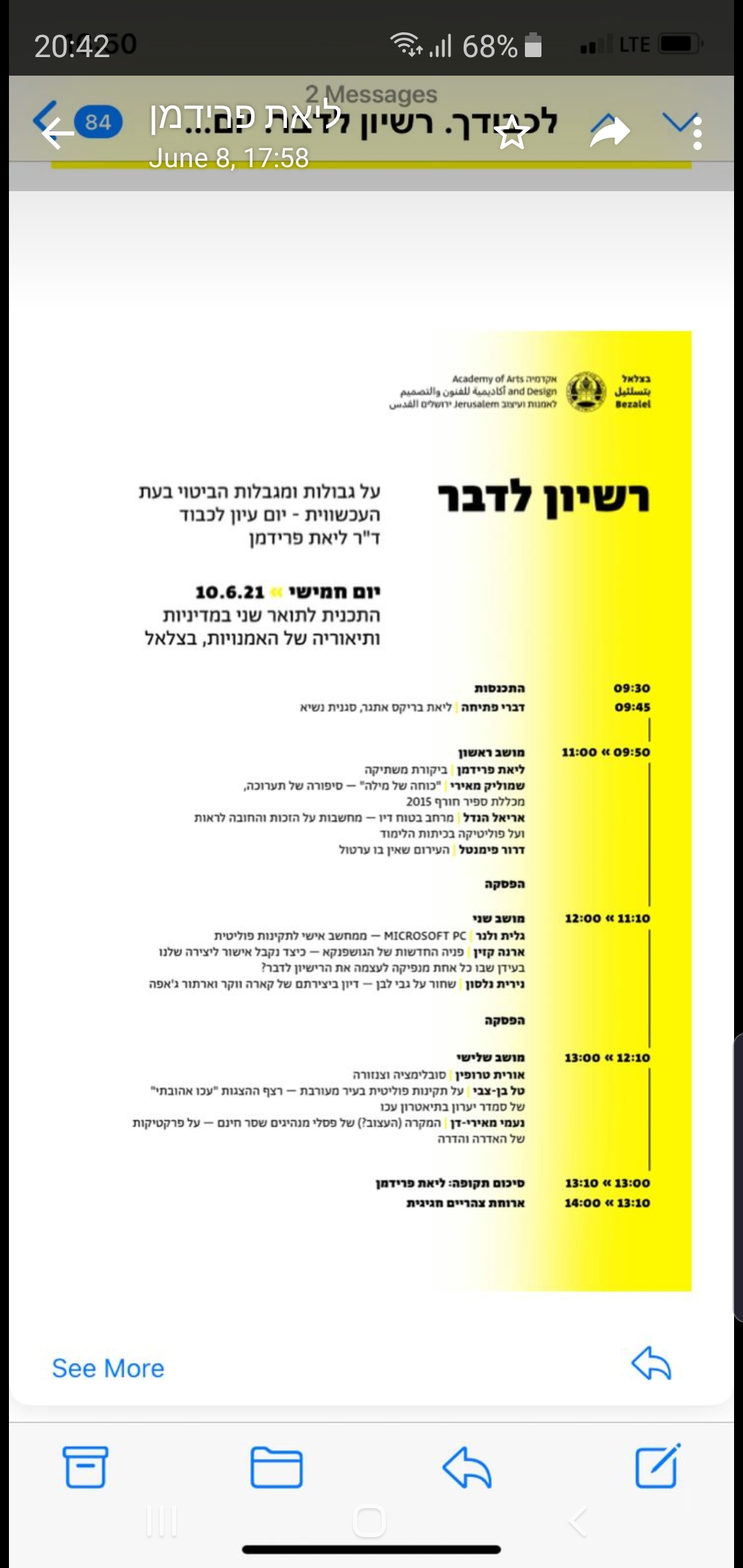 (עיבוד של) דברים שאמרתי אתמול (יום חמישי, 10 ביוני, 2021) ביום עיון לכבוד הד"ר ליאת פרידמן, ראש התוכנית לתואר שני במדיניות ותיאוריה של האמנויות בבצלאל, שעוזבת את תפקידה אחרי שתי קדנציות מלאות וטובות